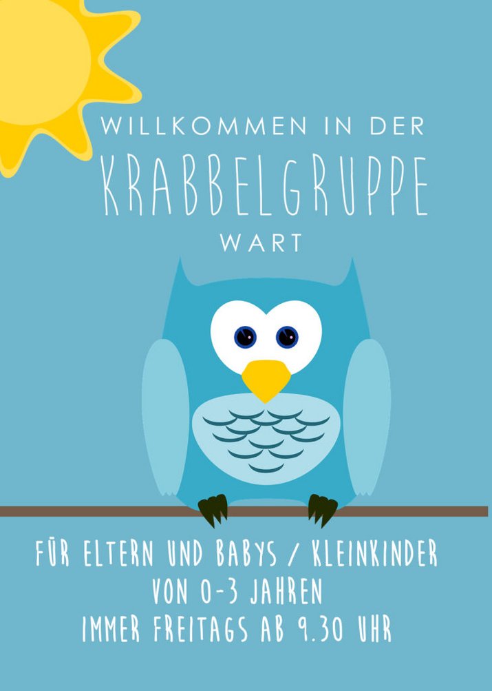 Die Krabbelgruppe ist unser Treffpunkt für Eltern mit Kindern von 0 bis 3 Jahren. Wir können uns als Eltern mit unseren Kindern kennenlernen, Austauschen, Singen und Spielen. Wir treffen uns freitags von 9.30 - 11.00 Uhr.